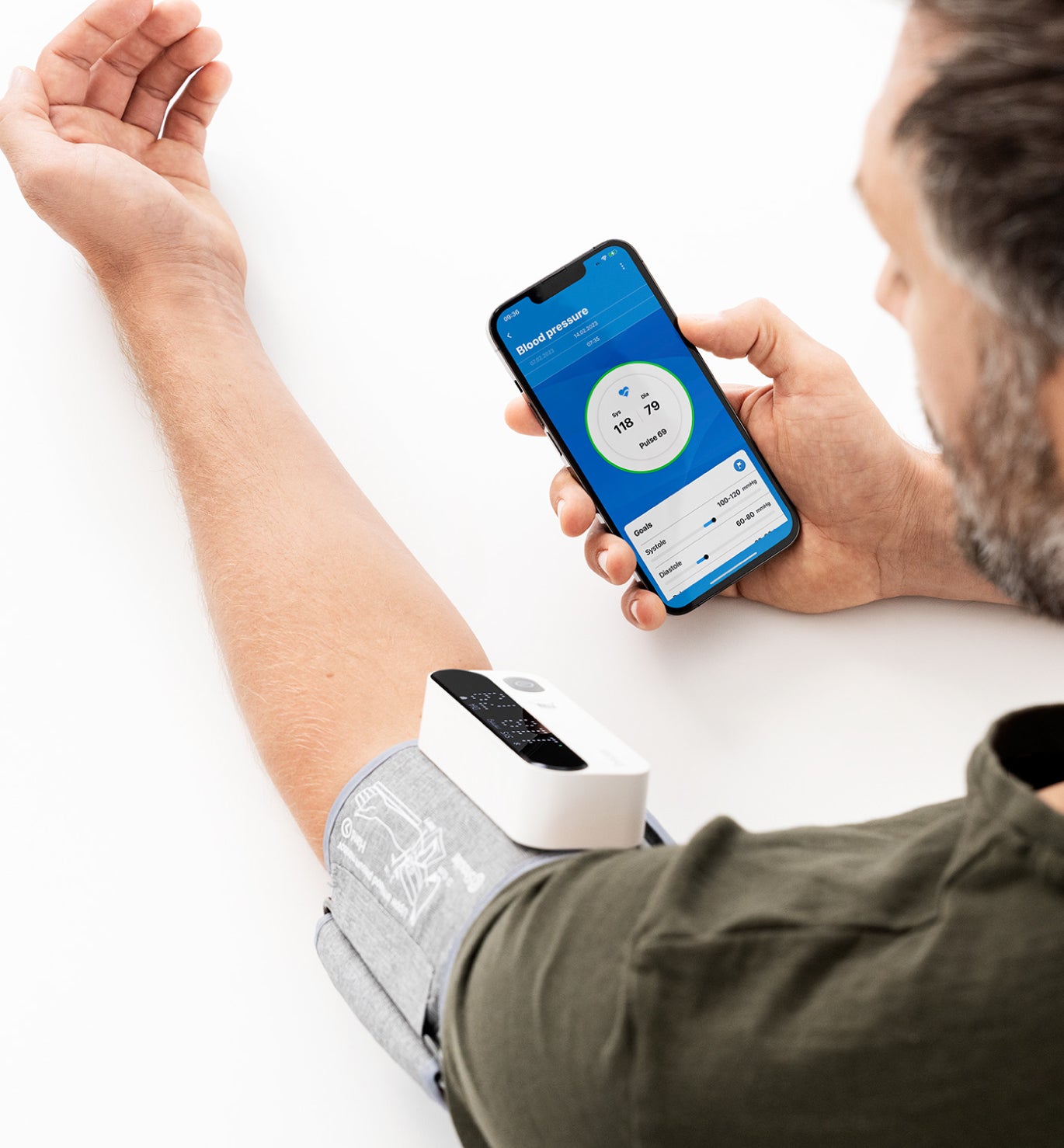 Conecta tus monitores de presión arteria, básculas, y más a tu smartphone. Disponible para dispositivos Android y iOS.