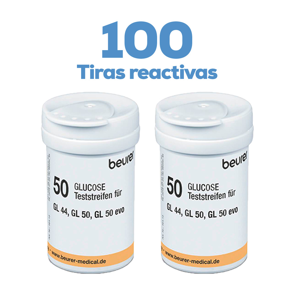 100 Tiras Reactivas para Glucómetro GL44 Digital / TR44 x2 Marca beurer