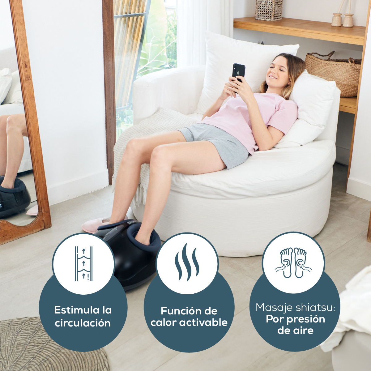 Masaje de reflexología podal que estimula la circulación para el bienestar de tus pies, además cuenta con función de masaje con presión de aire y opción de calor.