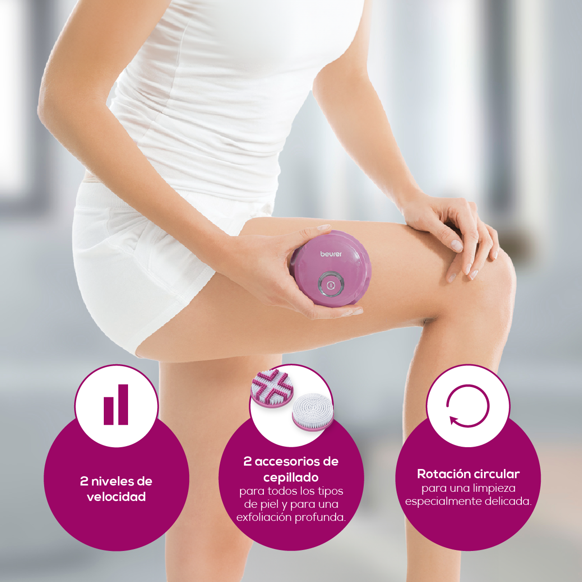 - 2 accesorios de cepillado: para todos los tipos de piel y para una exfoliación profunda