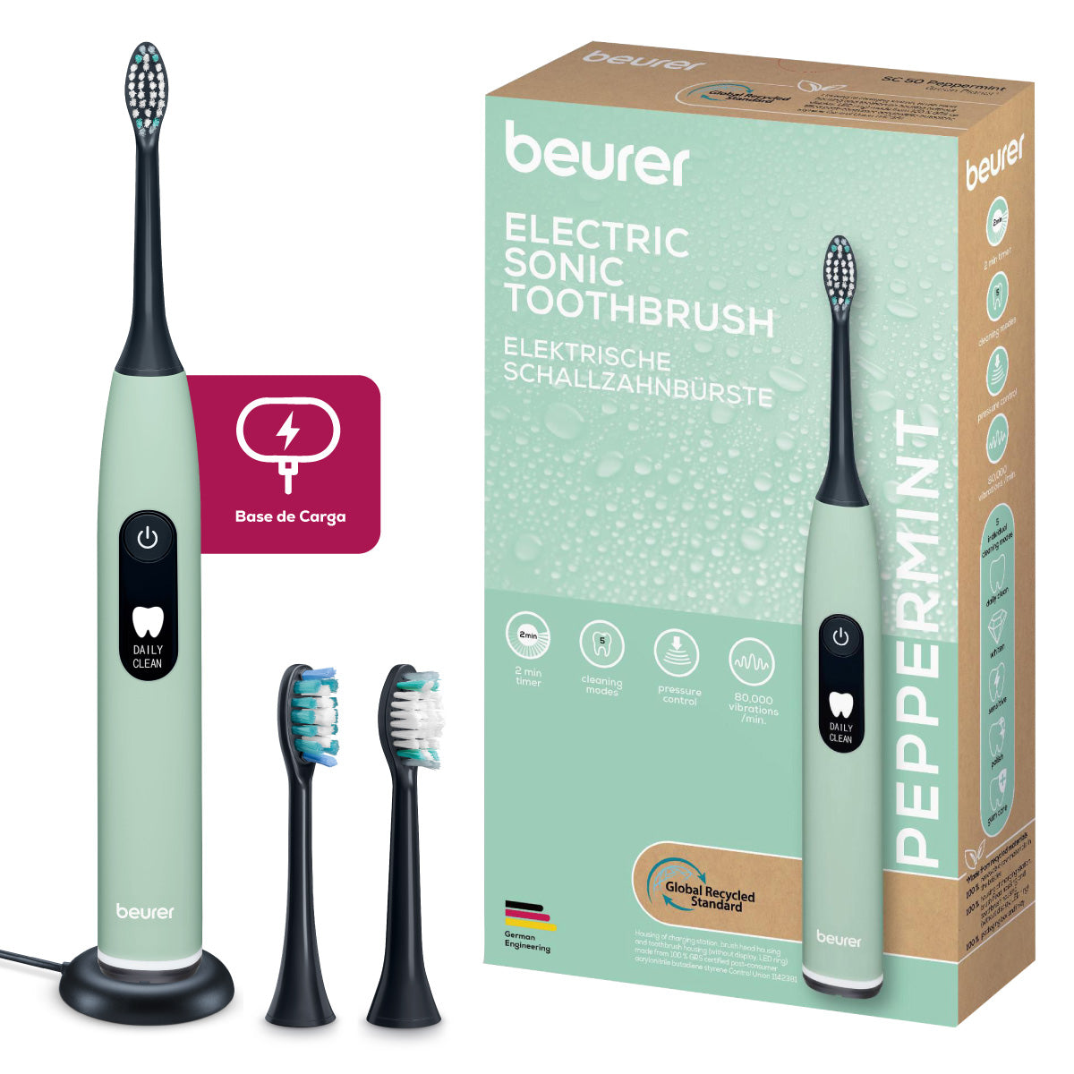 Cepillo Dental Eléctrico Recargable | Sónico | Con 5 Programas de Limpieza y 2 Cabezales | Beurer