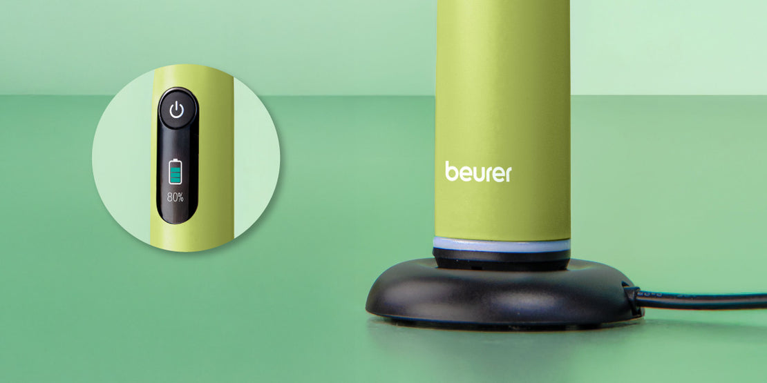 Su batería recargable de larga duración ofrece hasta 22 días de uso y se recarga fácilmente al colocarlo en su base, brindando comodidad, potencia constante y bloqueo de viaje.
