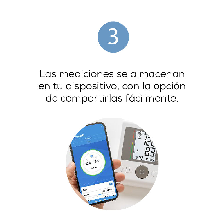 Gracias a su memoria de 2x100 podrás llevar un registro completo de tus mediciones hasta por 100 días.