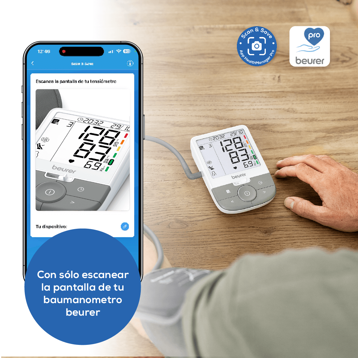 Los baumanómetros Beurer son compatibles con la App HealthManager Pro, y su función: Scan & Save para llevar un registro de tus mediciones en tu celular.