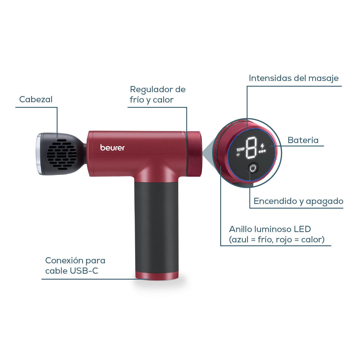 Pistola de Masaje Muscular Recargable con función de Frío y Calor MG195BF2025 Limited Edition Cherry | Marca Beurer