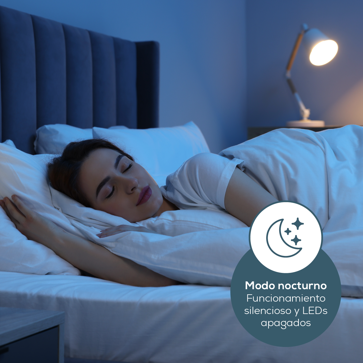 - Con modo de noche: funcionamiento silencioso con panel de manejo atenuado