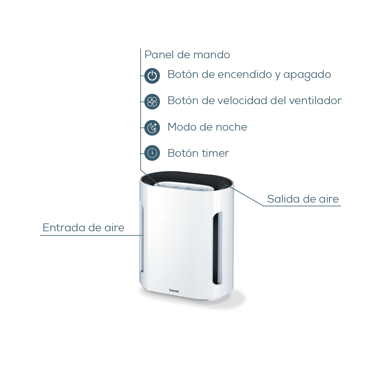 Purificador de Aire con Filtro HEPA, Filtra Virus, Bacteria, Polvo, Pelos de Animales y Olores / LR210 Marca beurer®
