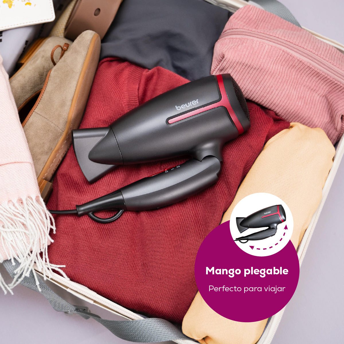 - Mango ergonómico plegable: compacto y portátil