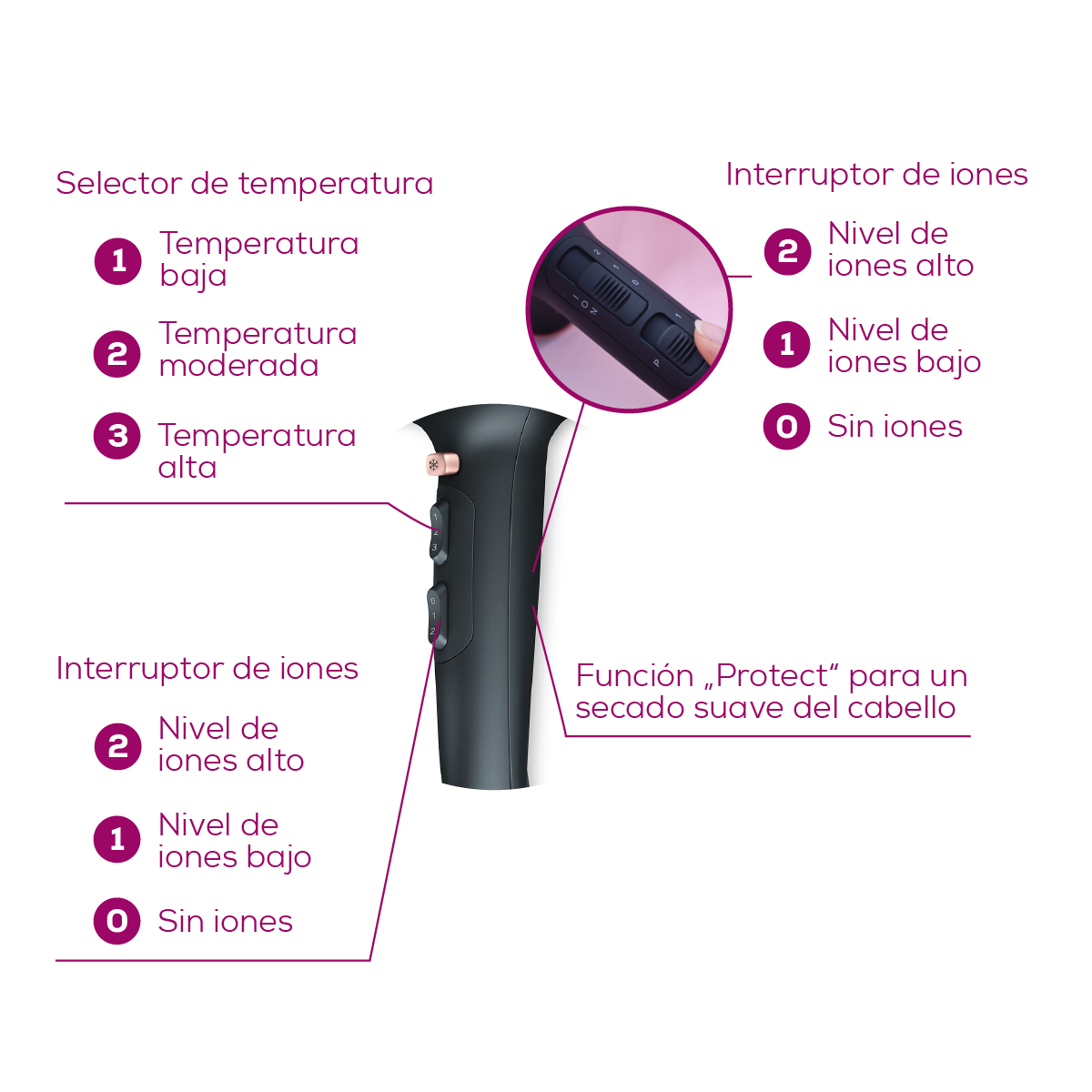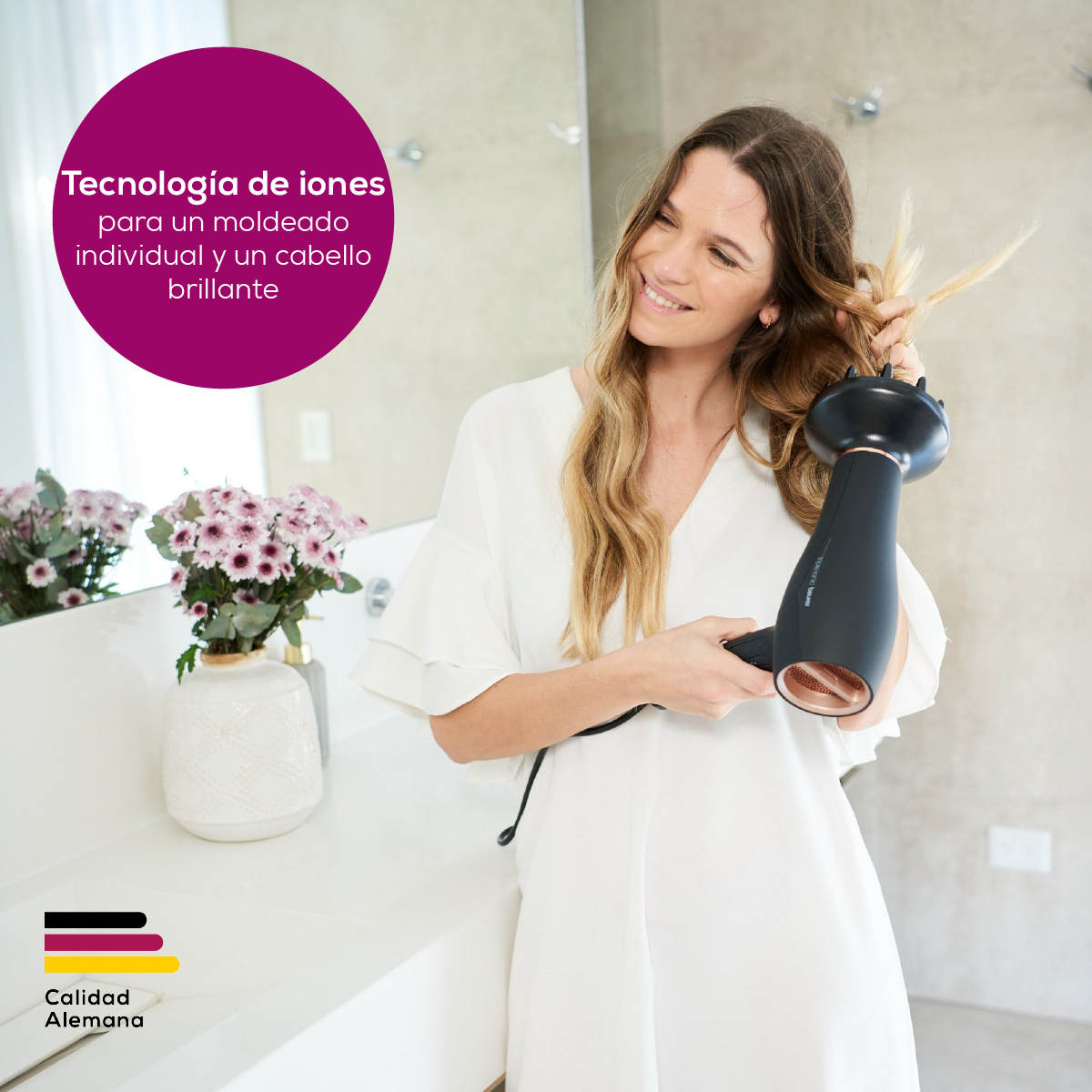 Tecnología de iones en 3 niveles para un moldeado individual y un cabello brillante.