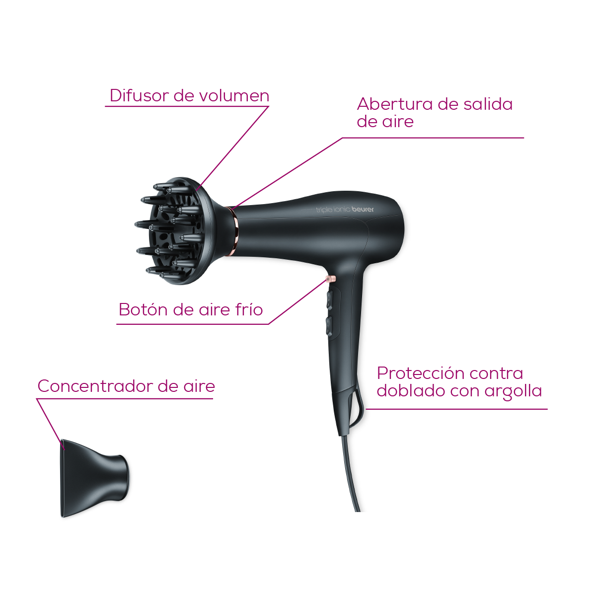 Secadora de Cabello Profesional con Difusor y botón de aire frío, Pro Style HC50 - Marca Beurer