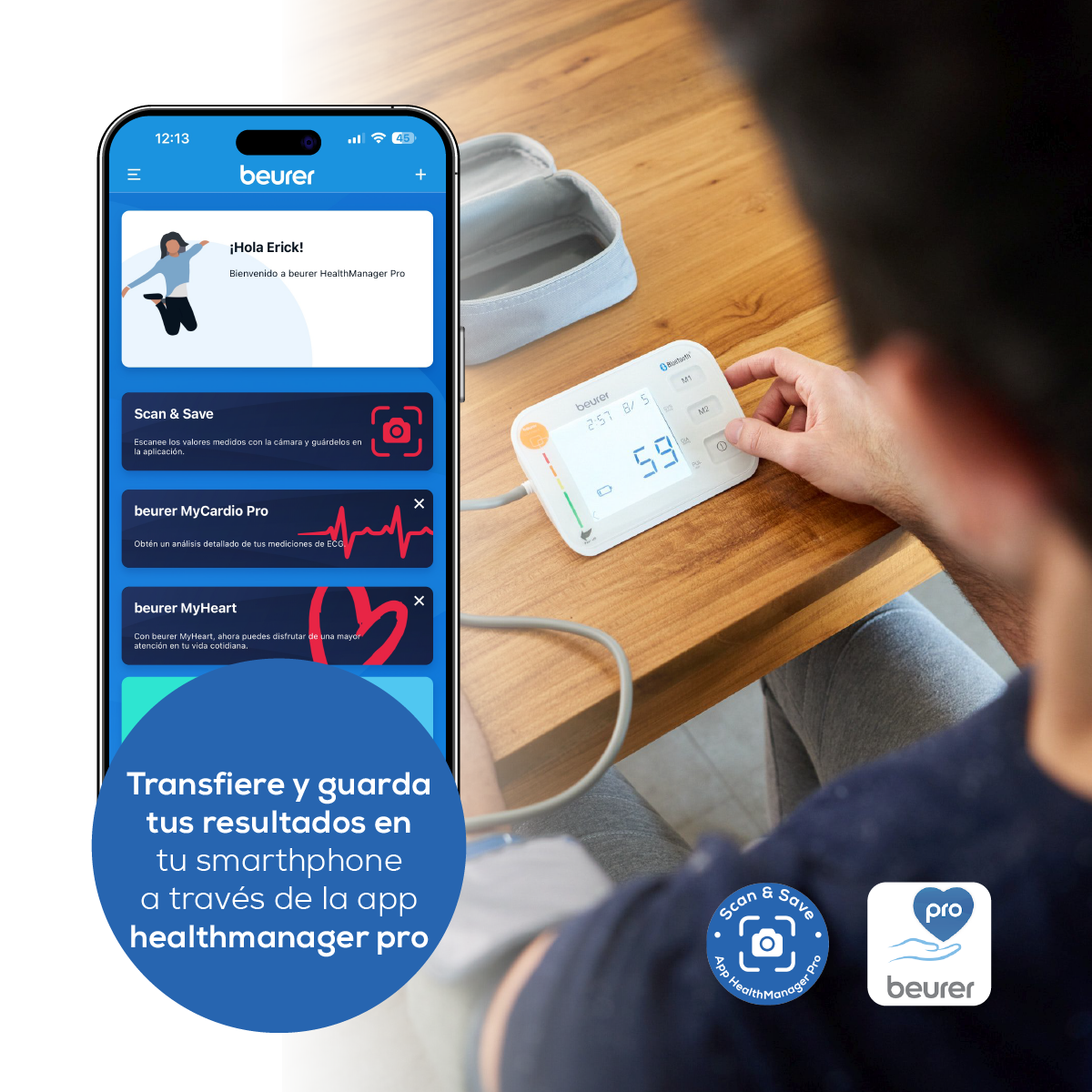 Compatible con la app "beurer HealthManager" (descarga gratuita)